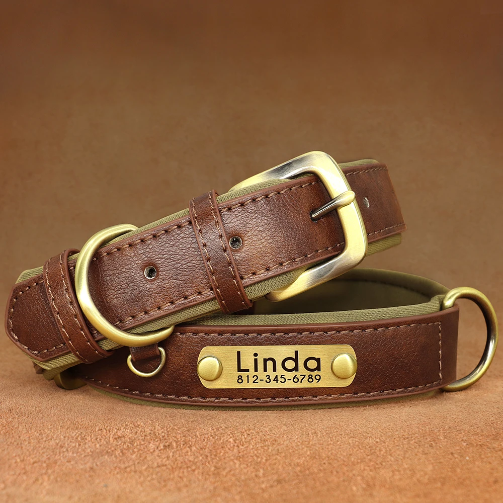Customized Nameplate, Leather Dog Collar
